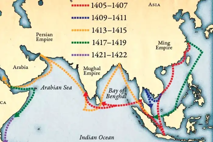 Снаряжаемые флотилии поражали воображение. Каждая экспедиция насчитывала по 180-200 судов и включала 28 тысяч пассажиров: армию, обслугу, наложниц, переводчиков, ученых, чиновников и т.д.