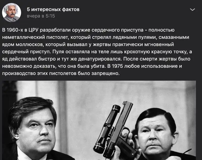 На фото мы видим сенатора Фрэнка Чёрча, и секретное оружие ЦРУ – пистолет с ядовитыми дротиками