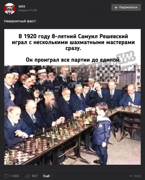 Юный вундеркинд Решевский выиграл все партии на этом фото