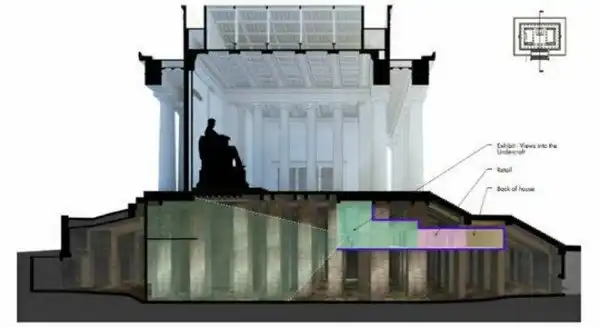 Под зданием Мемориала Линкольна находится подвал в 43,000 квадратных футов, заброшенный до 1974 года. Там образовались своя растительная жизнь и экосистема, а также есть граффити первых рабочих.