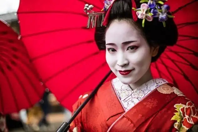 Когда мы пытаемся представить гейшу, у нас возникает картина девушки в богатом кимоно и с украшениями в волосах, лицо которой покрыто белой краской. В реальности гейша выглядела не совсем так. Гейши наносили белую краску для лица для особых случаев, но в целом у них был гораздо более обычный вид, который не слишком выделялих на фоне других женщин с макияжем. Девочки, которые ходили с белой краской для лица весь день напролет. были майко: несовершеннолетние, едва достигшие совершеннолетия ученицы, которые обучались, чтобы стать гейшами. Эти молодые девушки одевались так, как мы сегодня представляем гейш. Белая краска для лица и украшения, которые они носили, на самом деле были символом неопытности; чем опытнее была гейша, тем проще ей было разрешено одеваться. К тому времени, когда гейша входила в число лучших, она полностью избавлялась от белой краски для лица. Так что, представляя привычный для европейца образ гейши, мы видим перед собой 13-летнего ребенка.
