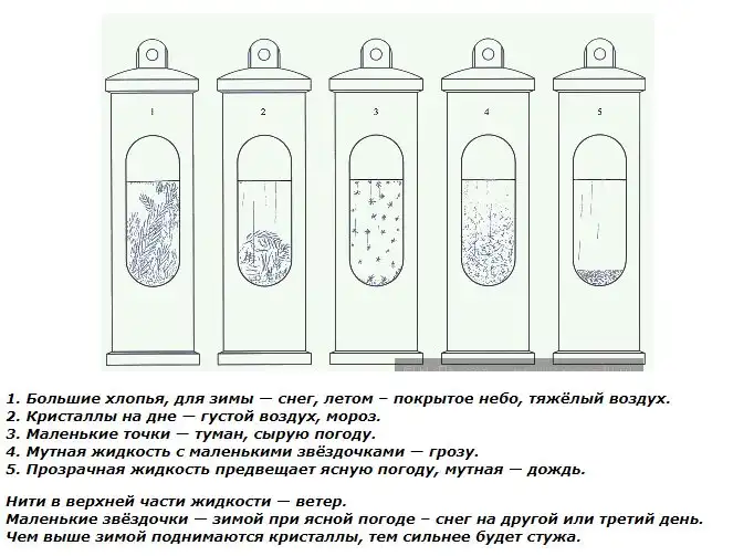 По результатам своих наблюдений за штормглассом Роберт Фицрой составил таблицу погоды в зависимости от прозрачности жидкости в колбе и наличия и формы кристаллов (или их отсутствия). Используя массив своих наблюдений, моряк научился довольно точно предсказывать погоду, так что спустя годы мужчина возглавил метеорологический департамент Великобритании и опубликовал произведение «Книга о погоде», где понятным языком систематизировал свои наблюдения за штормглассом.