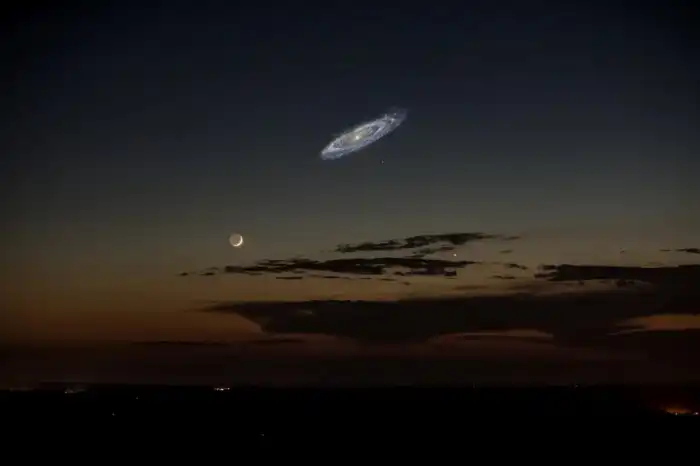Примерно так может выглядеть ночное небо с Земли через 2 млрд лет. В нем появится яркая галактика Андромеды.
