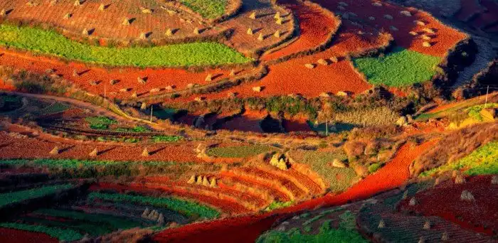 Тем, кто окажется в этих местах, может показаться, что сказка стала реальностью. Все потому, что почва в местечке Дончуань из-за отложения осадков после окисления становится натурально красного цвета.