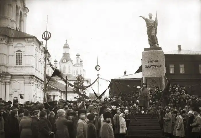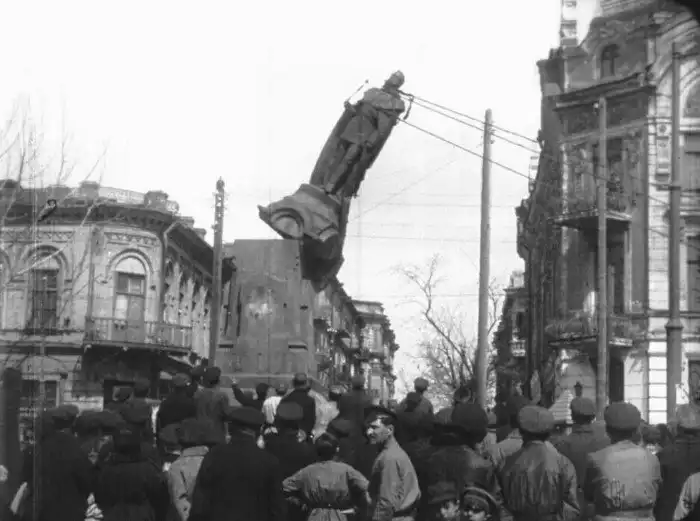 Так весной 1918 году родился ленинский план монументальной пропаганды. Совет Народных Комиссаров не замедлил выработать соответствующий декрет «О памятниках Республики». Он начинался так: «В ознаменование великого переворота, преобразившего Россию, Совет Народных Комиссаров постановляет: 1. Памятники, воздвигнутые в честь царей и их слуг и не представляющие интереса ни с исторической, ни с художественной стороны, подлежат снятию с площадей и улиц...» Далее специальная комиссия должна была организовать конкурсы проектов, в ознаменование великих дней социалистической революции. Кстати, декрет «о памятниках» запустил и практику переименования улиц: «Той же комиссии поручается подготовить… и замену надписей, эмблем, названий улиц, гербов и т.п. новыми, отражающими идеи и чувства революционной трудовой России». Первые «не представляющие интереса памятники» начали сносить в Кремле. В провинции они сохранялись нетронутыми значительно дольше.
