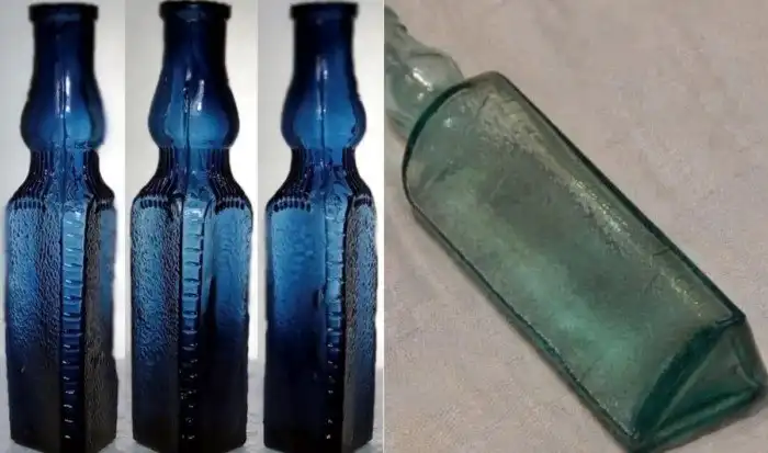 В конце XIX века в России начали массово производить уксусную эссенцию. Продавалась она в обычных стеклянных бутылках. Конечно, на этикетке было написано, что это уксусная кислота, но, если ночью захотелось для хорошего сна выпить 50-100 г настойки, а на кухне нет света, да ещё если читать не умеешь, то очень легко перепутать бутылки - глотнул не глядя и уснул вечным сном. Количество отравлений росло вместе с продажами эссенции. И тогда производители запретного напитка придумали специальные трёхгранные бутылки с насечками. Благодаря необычной форме бутылки в полной темноте можно было определить, что пить можно, а что нельзя. Насечки же были нужны, чтобы отмерять нужное количество эссенции для разбавления.