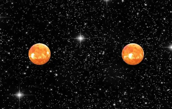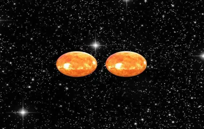 Однако совершенно другое дело – космос! Планеты, спутники и звёзды обладают уже вполне себе достойными массами, их гравитация в квадриллионы раз сильнее – и вот тут уже приливные силы обнаруживают себя во всей красе! Скажем, если в двойной системе где-нибудь далеко в космосе звёзды располагаются далеко друг от друга, они будут правильными круглыми «мячиками», как мы и привыкли представлять себе звёзды.