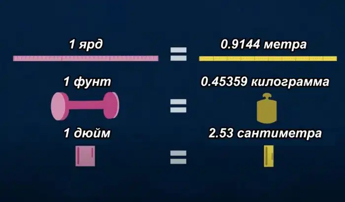 Американцы отсчитывают величины единицами, придуманными еще в Римской империи. За основу взяты усреднённые пропорции тела: дюйм – это длина пальца, ярд – расстояние от носа до кончика среднего пальца вытянутой руки и т.д.