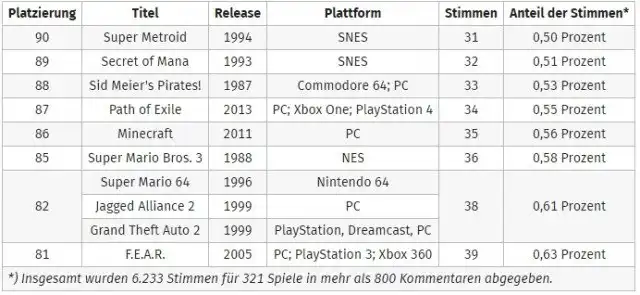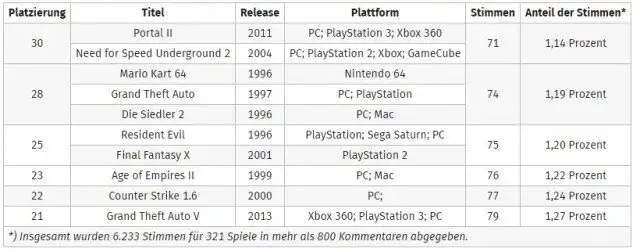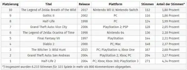Безусловно, о вкусах не спорят. Но немецкий ресурс Computerbase взял на себя смелость составить рейтинг лучших игр всех времен, проведя опрос среди более, чем 6000 своих читателей. В зачёт принимались игры на всех когда-либо выпущенных платформах и по итогам голосования был определен ТОП-100 игр разных эпох.