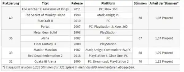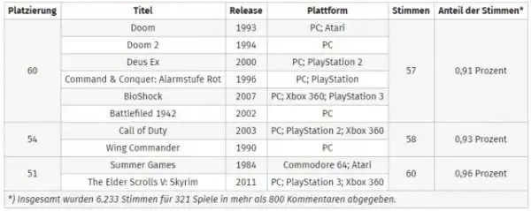 По большому счёту, если говорить о лидирующей тройке, то с выбором немецких игроков вполне можно согласиться, однако все последующие 97 игр явно не мешало бы перетасовать по правильным местам, которое они заняли в истории игр.