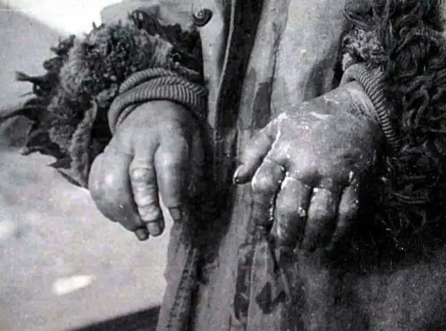 На снимке - обмороженные руки в результате экспериментов, проведенных в Отряде 731.