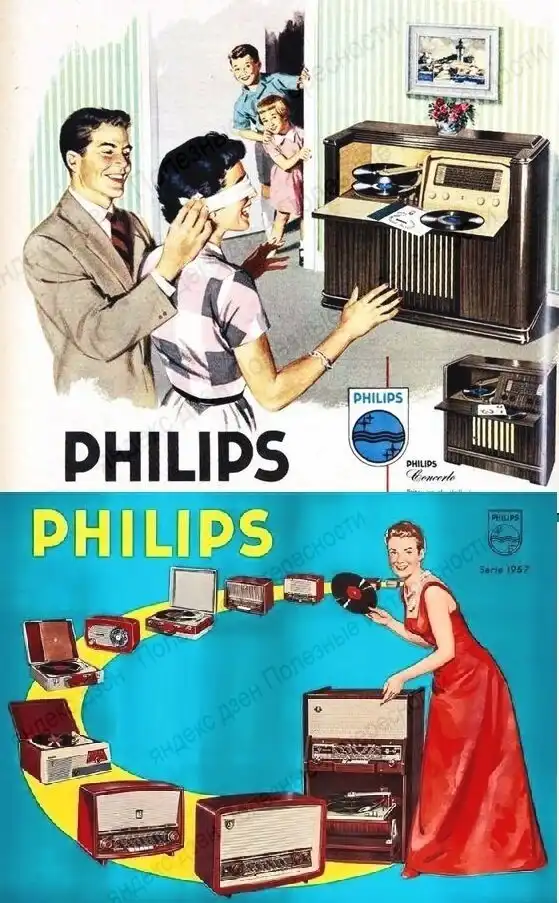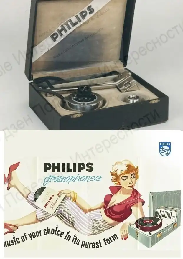 В 1930 году инженеры Philips выпустили первый патефон с электрическим двигателем. Это была настоящей бомбой на огромном рынке граммофонов. Ведь у всех граммофонов тех лет был пружинный двигатель, который надо было заводить после каждой песни. Philips тут же стал лидером рынка продаж.
