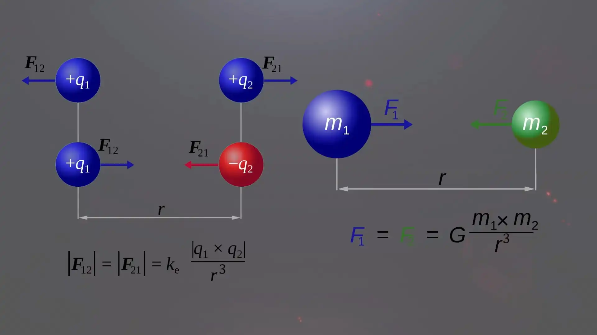 Объект, перемещенный на расстояние в 2 раза большее от источника, получает только четверть той мощности, которую он получал в первоначальном положении. На расстоянии в 3 раза большее от источника – в 9 раз меньше мощности, на расстоянии в 4 раза большее от источника – 16 раз и так далее. В законе всемирного тяготения сила гравитационного притяжения убывает тоже с квадратом расстояния. В два раза увеличиваем расстояние, сила притяжения уменьшается в 4 раза и так далее. Тоже самое с законом Кулона – сила притяжения или отталкивания заряженных частиц убывает с квадратом расстояния. В 5D мире закон обратных квадратов превращается в закон обратных кубов. Теперь интенсивность света будет падать не с квадратом расстояния, а с кубом расстояния. r^2 в законе Кулона и Законе всемирного тяготения превращается в r^3.