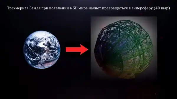 Но вообще, появится дополнительное направление, в котором могут двигаться частицы из которых состоит земля, планета начнет превращаться в гиперсферу, представить себе этот процесс, эти метаморфозы которые будут происходить, очень сложно.