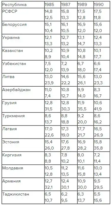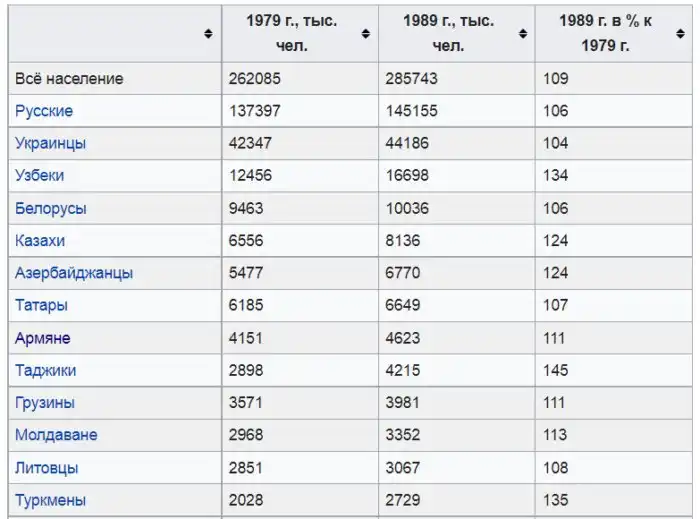 СССР в основном прирастал за счёт жителей среднеазиатских республик, а не славян. Для сравнения: в 1926 году таджиков было менее 1 млн. Но к 1989 году их численность возросла до 4 млн. Четырёхкратное увеличение! Также впечатляющий прирост продемонстрировали узбеки, киргизы, казахи и азербайджанцы.