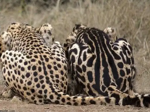 10. У гепардов изредка встречается генетическая мутация, в результате которой пятна на их шкуре крупнее и вдоль хребта сливаются в толстые черные полосы. Таких животных называют королевскими гепардами