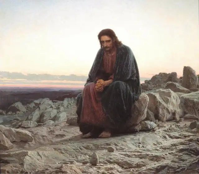 Сюжеты из жизни Христа писали многие живописцы XIX века, однако чаще всего Иисуса изображали со светлым одухотворенным ликом, но никак не изможденного и одинокого посреди пустыни. Полотно Крамского изображает искушение Христа дьяволом во время его сорокадневного поста после принятия крещения. Образ его максимально человечен, а внимание тут приковывается не только к напряженному лицу, но и к скрещенным пальцам.