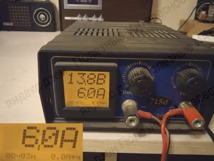 При этом заряд на аккумулятор подается импульсами и электролит не успевает "закипать". Аккумулятор полностью заряжен, когда длительность между очередными импульсами заряда доходит до 30-40 секунд.