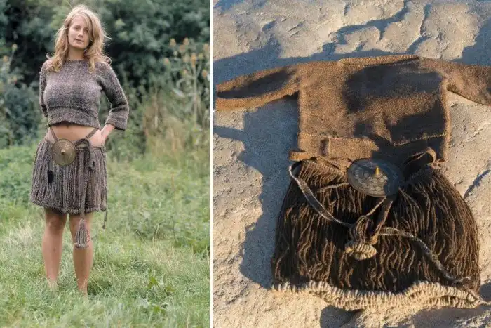 Девушке было 18 лет, она была стройной, ростом 160 сантиметров. У нее были короткие светлые волосы и хорошо подстриженные ногти. Из одежды – корсаж с рукавами до локтя. У нее была голая талия, и на короткая юбка на завязках. У нее были бронзовые браслеты и шерстяной пояс с большим диском, украшенным спиралями и шипом.