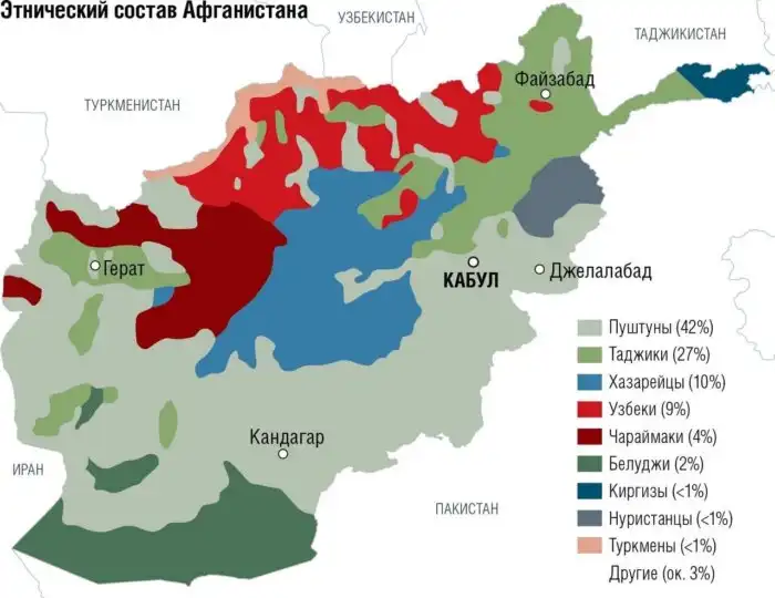 Ещё одна причина бесконечной войны – крайняя архаичность афганского населения. Афганской нации как таковой не существует. Есть группа народов, таких как пуштуны, узбеки, хазарейцы и белуджи, живущие в пределах одной территории.