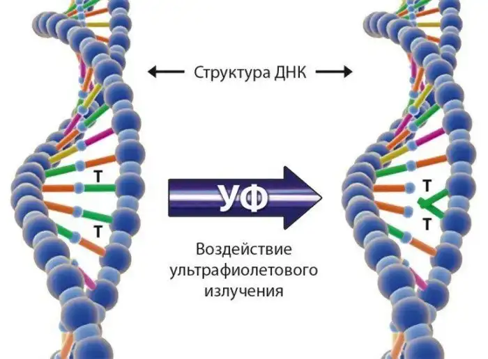 Ультрафиолетовые лучи повреждают ДНК в клетках кожи, в том числе путем подмены азотистых оснований – например, цитозина на тимин. Эти специфические сдвиги, согласно некоторым оценкам, несут ответственность более чем за половину всех фиксирующихся случаев рака кожи.