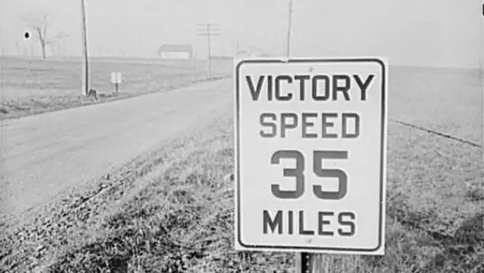 Во время Второй мировой войны США ввели общенациональное ограничение скорости - 35 миль в час, чтобы сэкономить бензин и резину для шин для военных действий