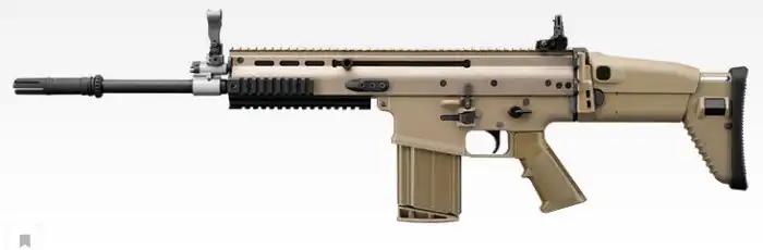 Из современного оружия можно привести в пример бельгийскую 7,62-мм штурмовую винтовку для сил специальных операций ВС США FN SCAR-H: