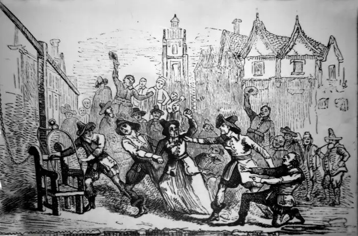 Второй был самым жестким. Табурет привязывали к балке и погружали женщину в воду на радость зевакам. Считалось, что погружение в холодную воду очищает от пылких грехов. Но в обоих случаях блудницы зачастую не выдерживали позора и кончали жизнь самоубийством.