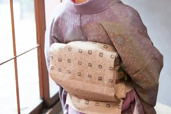 Талия оборачивается поясом - оби, который сложно завязывается на спине.