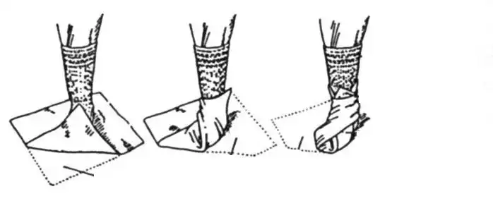 Как то на рыбалке дед поделился еще одним вариантом бумажных портянок. Одеваете тонкие синтетические носки и сверху обматываете ноги газетой в несколько слоев. Как лучше обмотать показана на рисунке.