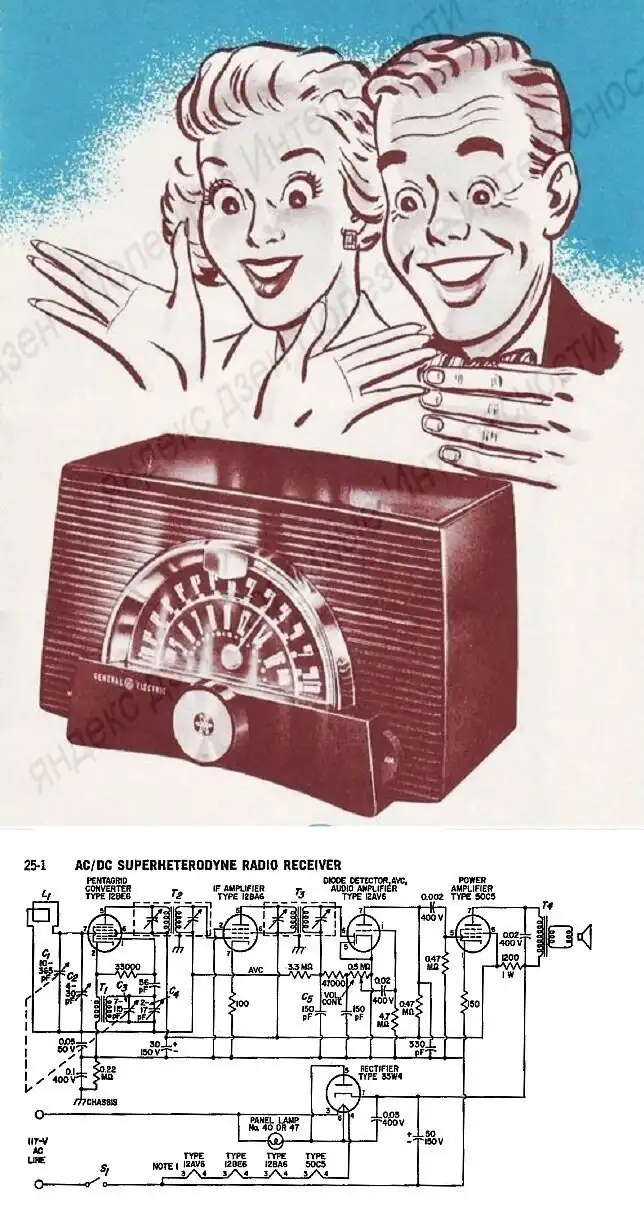 Каждый трансформатор собирается вручную, поэтому у них себестоимость очень высокая. Вот и решили производители избавится от этого "дорогого буржуина". Один из основных производителей радиоламп США, фирма RCA, разработала специальные радолампы. Вместо 200 Вольт для анодных цепей вполне было достаточно и 110 Вольт, а вместо накала в 6,3 Вольта сделали 12 и 50 Вольт. В схеме нити накалов радиоламп соединялись последовательно и суммарное напряжение накала получалось достаточным для прямого включения в розетку 110 вольт.