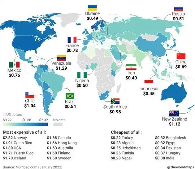 Сколько стоит бутылка питьевой воды (1,5 литра) в разных странах мира?