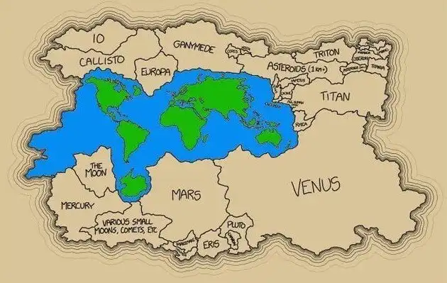 Сравнение территории Земли с площадями некоторых объектов Солнечной системы