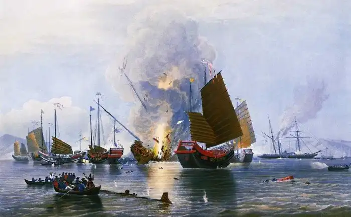 Уничтожение китайских военных джонок, 1843 г. Художник – Эдвард Дункан