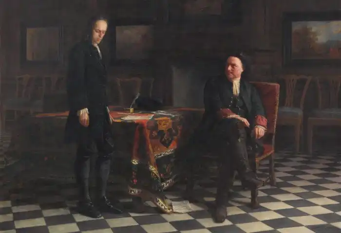«Петр I допрашивает царевича Алексея Петровича в Петергофе», картина Николая Ге, 1871 г.