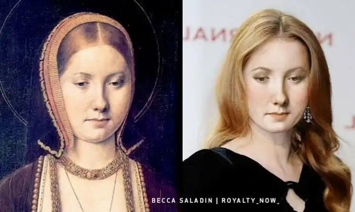 Этот портрет Екатерины Арагонской - дочери Фердинанда, основателя Испании, как государства. Внешне, как видите, Екатерина совсем не похожа на тех, кого мы считаем типичными испанками. Ее волосы были золотистого цвета.