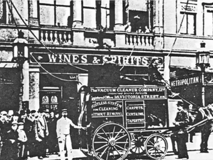 Первый пылесос, напоминающий современную технику этого типа, был создан английским инженером Хьюбертом Бутом в 1901 году. Он имел гигантские размеры, работал от двигателя внутреннего сгорания и находился в фургоне, который перемещала в пространстве пара лошадей. В том же году другой умелец продемонстрировал машину, пытавшуюся делать уборку с помощью мощной струи воздуха, но этот агрегат лишь поднимал пыль, которая затем все равно где-то оседала.