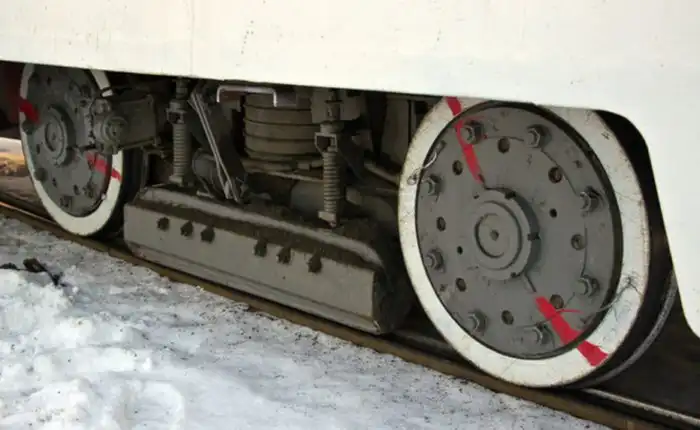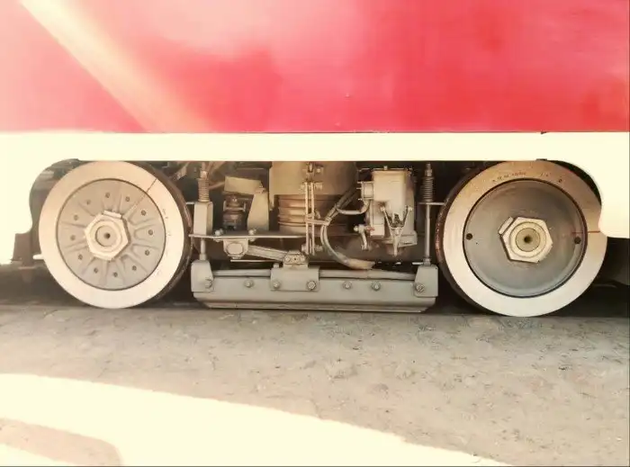 Трамвайные колёса отличаются от тех, что у поездов. У них не только меньший размер, они также и меньше по диаметру и состоят из большого количества разных разъёмных соединений. А у пассажирских вагонов колёса цельные, без каких-либо гаек.