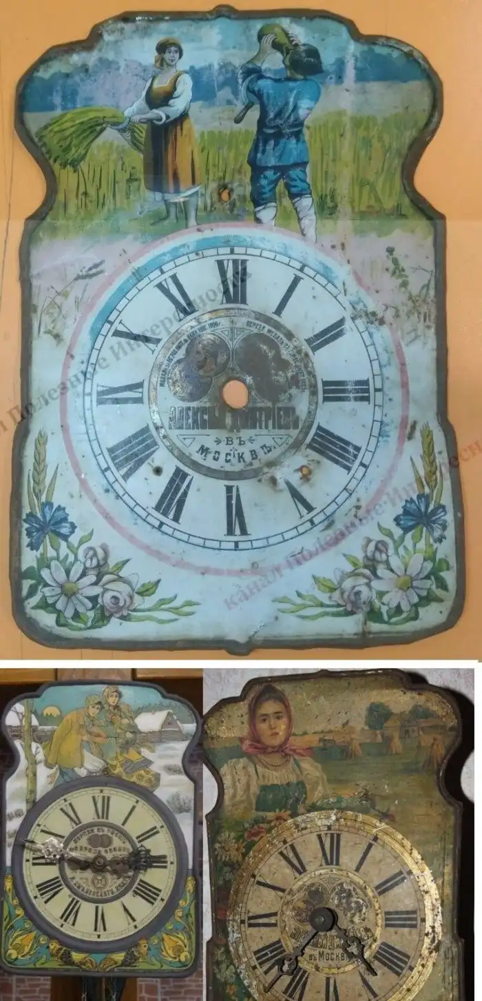 Вскоре часовые мастерские начали появляется как грибы после дождя. Причем все они специализировались именно на самых простых часах-"ходиках". На них хоть и наценка была самая низкая, но зато спрос всегда высокий и стабильный. Вот тогда и появилась знаменитая форма циферблата. Только вместо соснового бора с мишками там печатались картины на крестьянские мотивы.