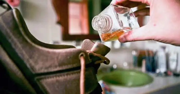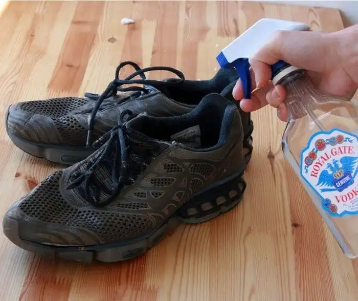 Запах можно вывести водкой или спиртом. Спиртосодержащие составы хорошо обеззараживают, не оставляя даже намека на плохой запах. Кстати и высохнет обувь быстрее, из-за того что спирт быстро испаряется с поверхности. Чтобы получить стойкий эффект, нужно в течение недели обрабатывать составом обувь.