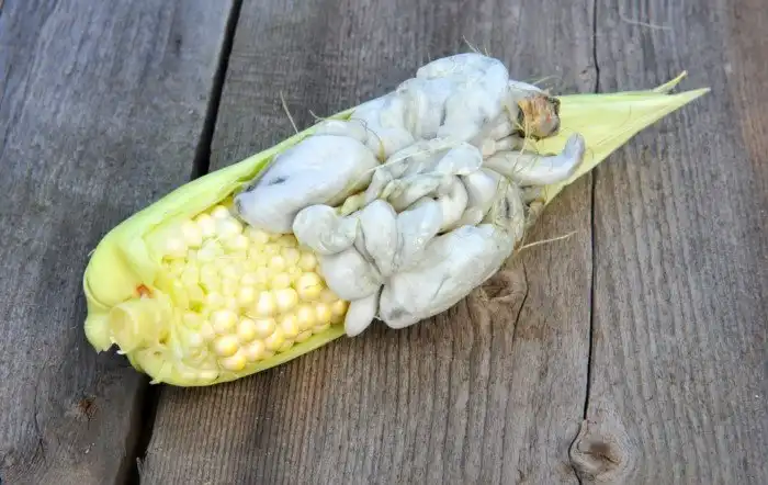 Иногда на стебле кукурузы растёт вот такая штука. Оказывается, это съедобная кукурузная головня, считающаяся деликатесом.