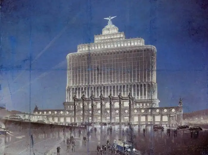 Самое грандиозное сооружение, которые когда-либо проектировали в СССР. Здание планировали построить в смешанном стиле модерна и советского неоклассицизма. Всего во дворце было 100 этажей, а сам он был высотой 421 метр.