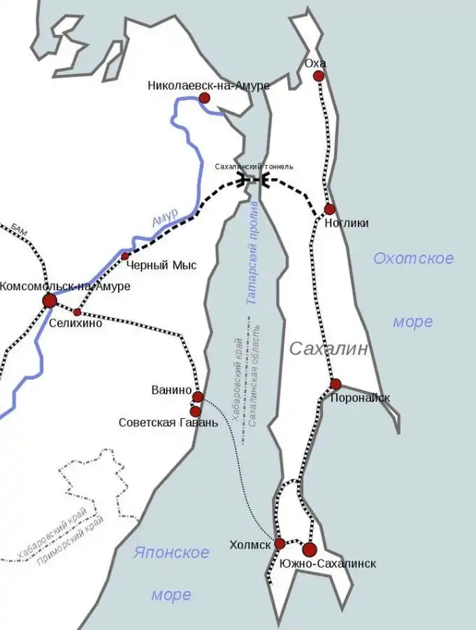 Тоннель должен был соединить остров с основной частью России. Начало его эксплуатации было запланировано на конец 1955 года. Подготовительные работы были завершены, однако строительство соединяющей железной дороги так и не начали.