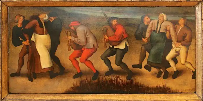 Подобные эпидемии получили название "Пляска святого Витта" (совершенно непонятно, откуда взялась вторая "т"). В средневековой Германии бытовало поверие, что тот, кто спляшет в день поминовения святого Вита перед его статуей, будет здоров весь год. Часто такие пляски принимали массовый характер, причём танцующие доводили себя до исступления.