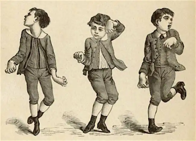 Движения, характерные для синдрома хореи - "Пляски святого Витта". Иллюстрация из медицинской книги XIX века
