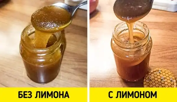 Ни для кого не секрет, что со временем мед начинает засахариваться и приобретает более плотную консистенцию. Полезное лакомство никак не портится, но становится уже не таким аппетитным. Если мед начал твердеть, в емкость к нему можно добавить ломтики лимона. В том месте, где лежит цитрус, мед будет жидким.