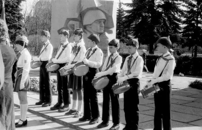 Однако не будем говорить о глобальных переменах, которые случаться позже. Фотографии-то сделаны в 1985 году, а на тот момент Советский Союз казался всем живее всех живых. И приём в пионеры был одним из важнейших событий в жизни советского школьника. Если честно, то я даже не знаю с чем тут можно провести аналогию. Сейчас ничего подобного нет, и уж тем более ничего подобного не было в мои школьные годы. И естественно я никогда не смогу понять эмоций вот этих ребят с фотографий. Ведь они росли в одной стране, но вместо неё внезапно наступила другая. И в этой новой стране места для всего того, что им долгие годы рассказывали, не нашлось.
