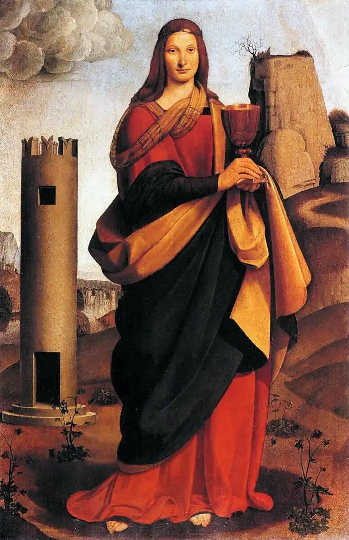 Святая Варвара. На заднем плане – башня, в которую её заточили