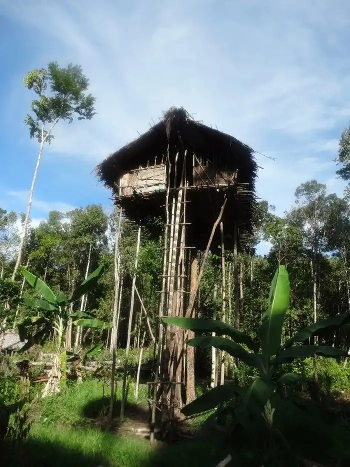 Но как же такие дома вообще можно построить? Если учесть, что Короваи все делают костяными и каменными инструментами, то кажется, что никак. Однако они справляются. Дома возводятся из баньяна и пальмовых листьев, а лестница к ним делается из лиан. Мужчины племени передают навыки строительства таких необычных убежищ из поколения в поколение.