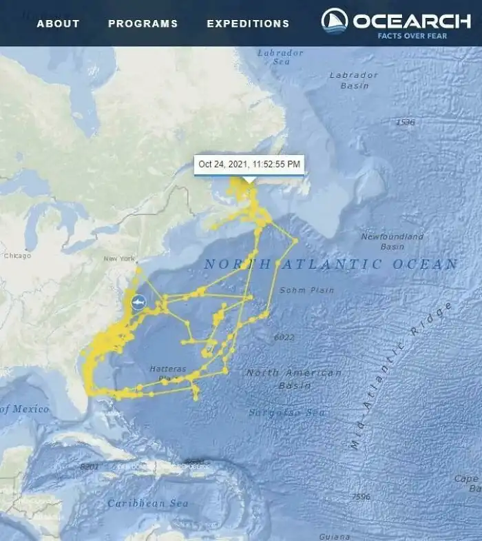 2. Акула с GPS-трекером нарисовала на карте акулу
